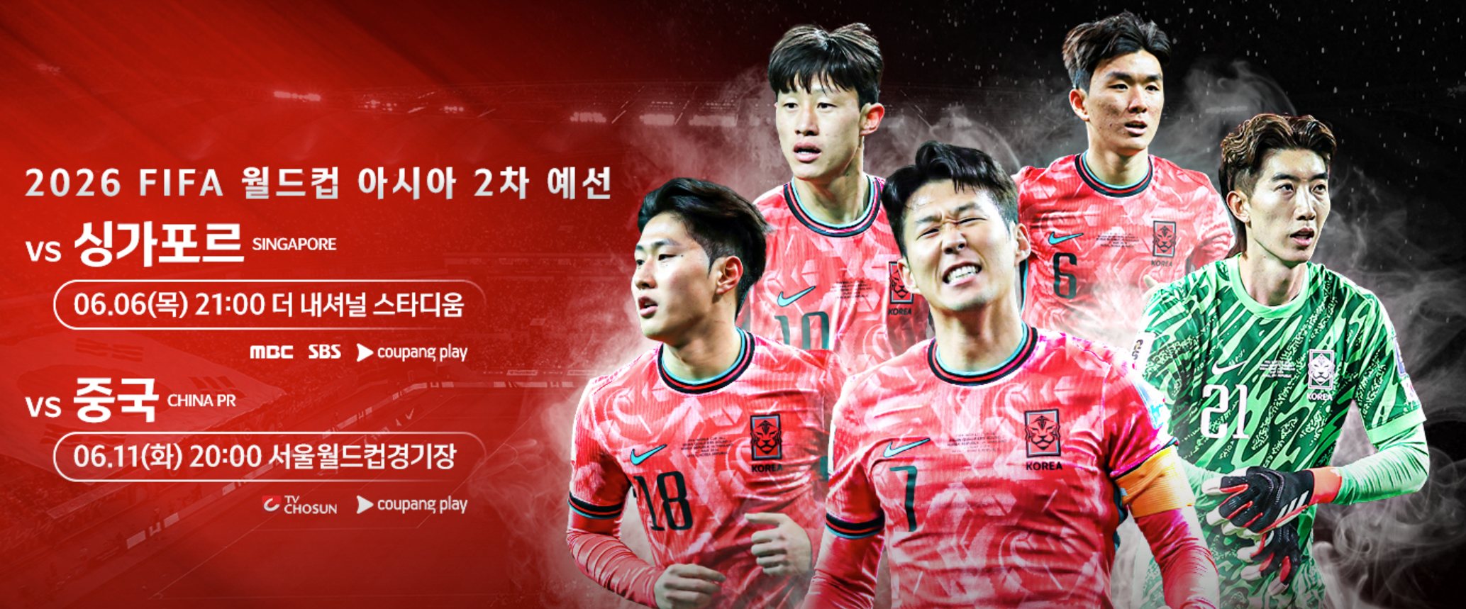 벌써부터 설레고 기대됩니다. 싱가포르에 이어 중국을 상대로 대승 할 수 있도록 같이 응원하면 좋겠습니다.